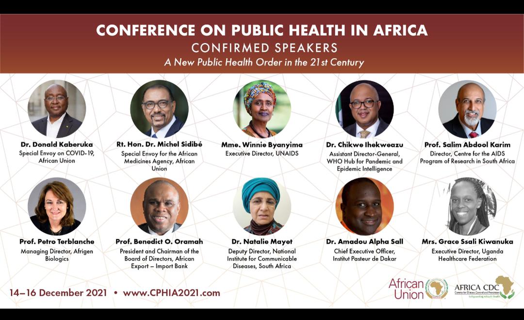 I have the pleasure of officially inviting you to participate in the 1st International Conference on Public Health in Africa (CPHIA 2021), hosted by the Africa Centers for Disease Control and Prevention (Africa CDC) and African Union, taking place virtually 14-16 December 2021.